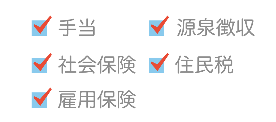 手当も管理できます。「交通費」や「材料係手当」など、名目は自由です。手当管理を詳しく見る